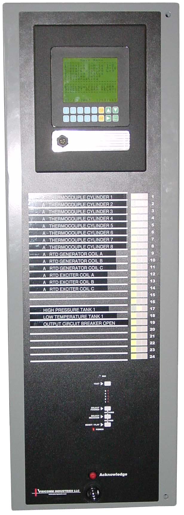 | DATA LOGGER | An RS232 (or specify RS485) port for connection to a laptop (or may be connected to a desktop PC). Unit stores and time stamps the last 256 events (in a FIFO format). An event is defined as the alarm, the acknoledge, and the return to normal. This provides a complete written record of the duration of the events. Monitors NO/NC contact alarms as well as analog alarms. |